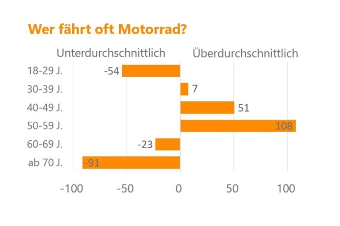Am häufigsten sitzt im Sattel eines Motorrads ein Mann zwischen 50 und 60