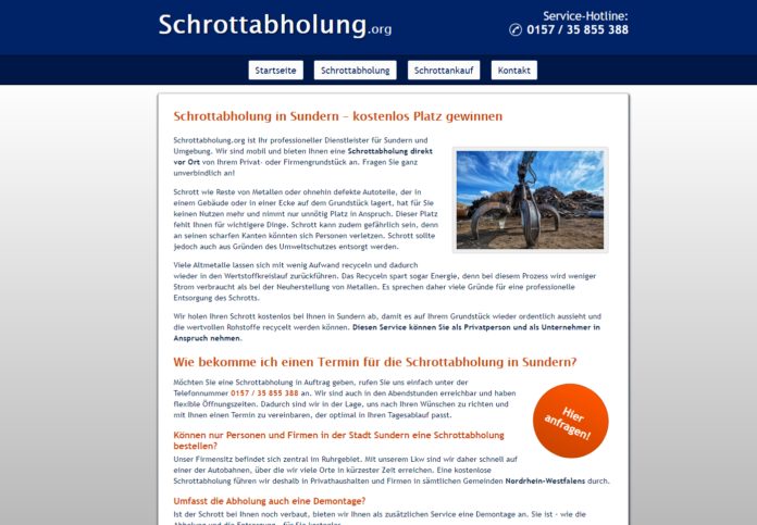 Dieser Aufgabe hat sich die Schrottabholung Sundern verschrieben. Sie holt den Schrott bei ihren Kunden in Sundern ab und führt sie einem effektiven und umweltverträglichen Schrott-Recycling zu. Dadurch können – gerade bei Elektroschrott, wie Kfz-Teilen und Computerschrott, aber auch vielen anderen Schrottarten – Sekundärrohstoffe separiert und einem Wiedereinsatz zugeführt werden. Bei diesen Sekundärrohstoffen handelt es sich zum Beispiel um Aluminium, Kunststoff, Weißblech und Glas.
