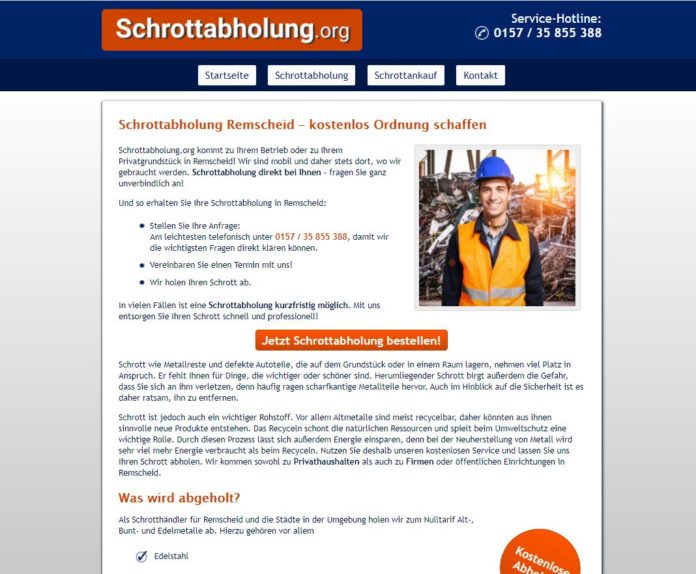 Mit dem Team von Schrottabholung.org steht den Kunden ein zuverlässiger Partner für die Entsorgung zur Seite. Er ist schon viele Jahre in dem Bereich tätig und hat alle erforderlichen Nachweise, die eine ordentliche Entsorgung sicherstellen.