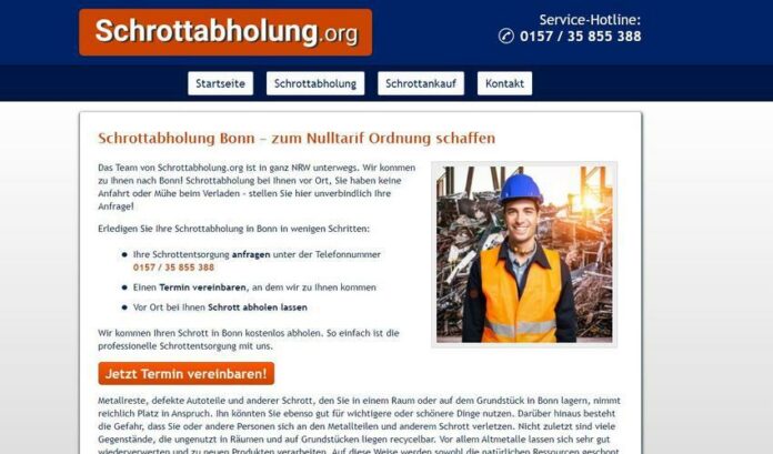 Die Schrottabholung sammelt haushaltsüblichen Schrott im gesamten Stadtgebiet und dem Umland von Bonn, um es dem Recycling zuzuführen