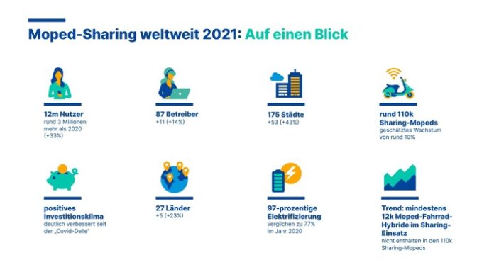 Anzahl der registrierten Nutzer steigt innerhalb eines Jahres um 33 Prozent, die Zahl der Städte, in denen Moped-Sharing angeboten wird, um 43 Prozent.