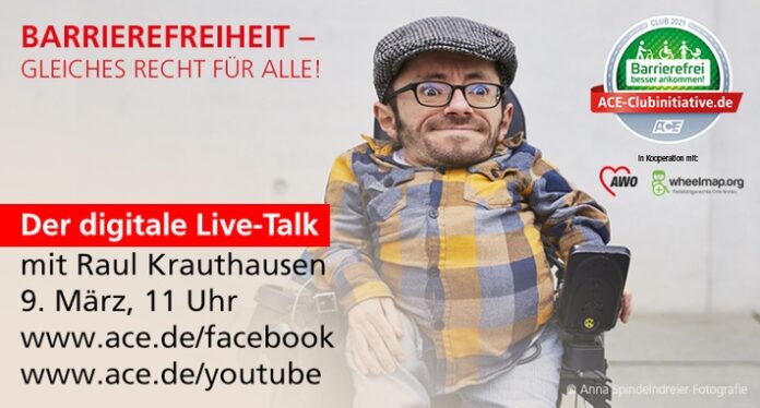 Im Vorfeld der ACE-Initiative „Barrierefrei besser ankommen“ diskutiert der ACE über den Status Quo, notwendige Maßnahmen und Handlungsbedarfe in einem digitalen Live-Talk. Dazu sind alle Interessierten herzlich eingeladen: